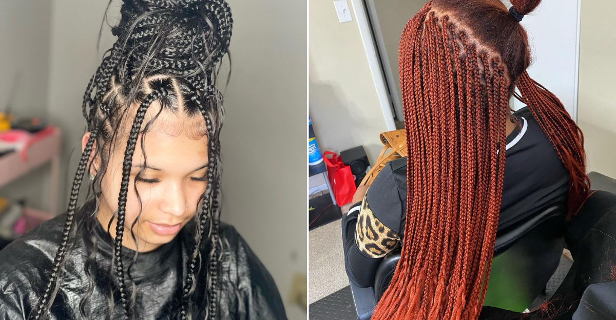 A modern evolution of box braids, this technique starts with your natural hair and seamlessly feeds in extensions. It eliminates the bulky base knot for a more natural, scalp-friendly, and lightweight installation.