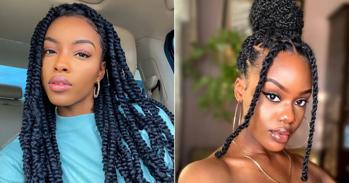 These classic twists are created by twisting two strands of hair together from root to tip, typically using a smoother, kanekalon-type fiber. They offer a sleek, defined, and sophisticated rope-like appearance.