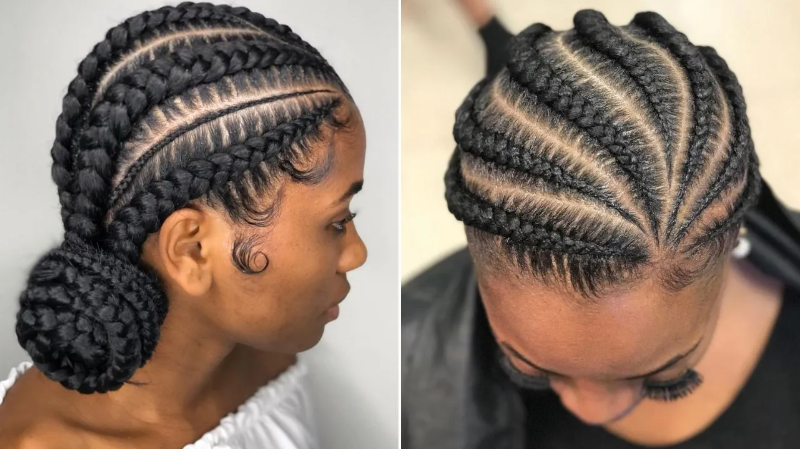 A foundational and artistic braiding technique where hair is braided closely to the scalp in continuous, underhand rows. They can be simple and straight or elaborate with intricate curves and patterns.